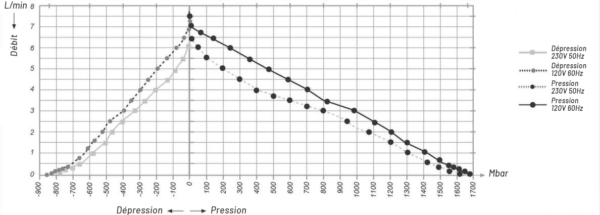 | Pression (Bar) | 230V 50Hz : 1,6 |
