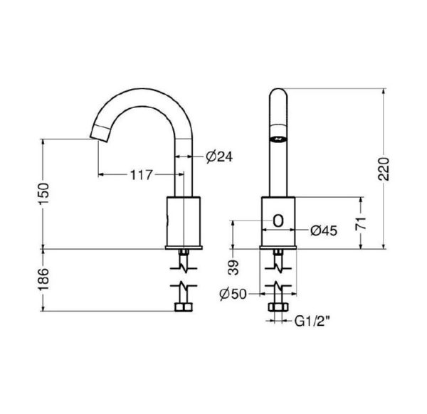 Les mitigeurs électroniques équipent les installations d’eau chaude sanitaire (lavabos) et permettent une action sur une température désirée. Selon le modèle, le robinet fonctionnera à pile et sera équipé d'un capteur à détection infrarouge.Corps en laiton chrome
